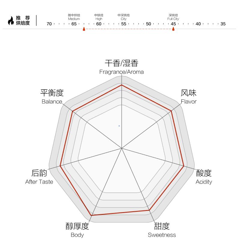 這款山象莊園雪松曼特寧,它的果酸相對多一些,香氣上揚,有別于一般的曼特寧的悶香。中度烘焙時它的蘋果香、帶有柔順的杏仁味,中深烘焙時它蘋果酸輕柔了,黑巧克力和焦糖的風味更為突出,這是很多愛好者的偏向。當也可以深度烘焙,雖然油脂上去,曼特寧的木質味沒有。這也是雪松曼特寧的特點,各階段的烘焙都適合。